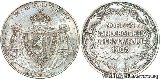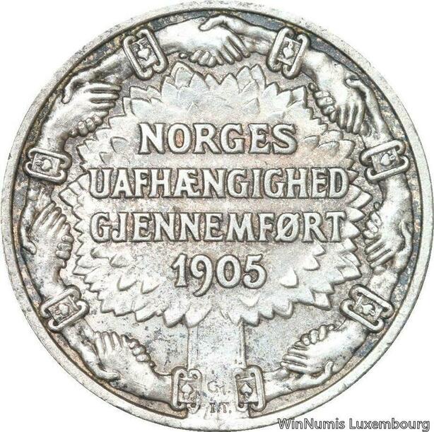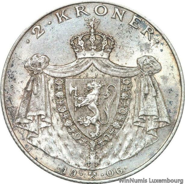 R6155 Rare Norway 2 Kroner Haakon VII Jubileum 1906 Silver AU -> Make offer