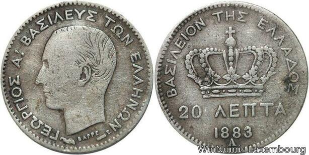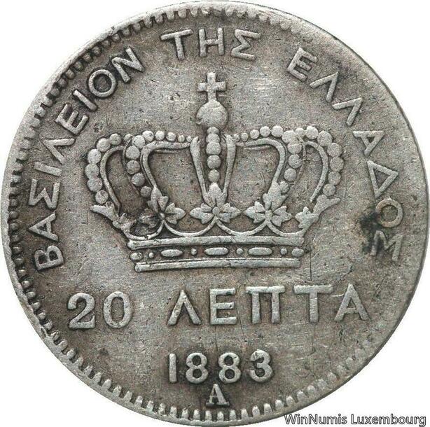 R6163 Greece 20 Lepta George I 1883 A Paris Silver -> Make offer