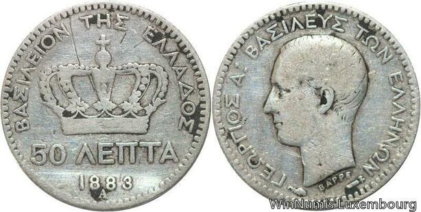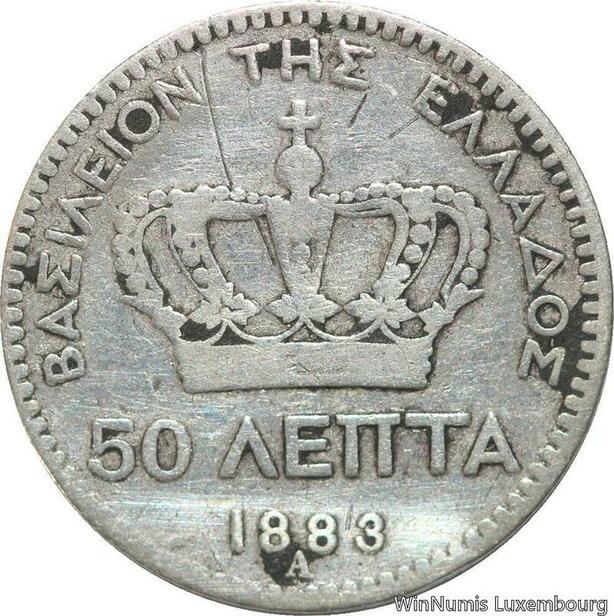 R6165 Greece 50 Lepta George I 1883 A Paris Silver -> Make offer