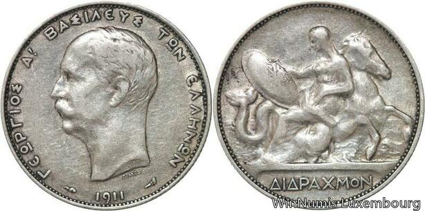 R6169 Greece Drachmai George I 1911 A Paris Silver -> Make offer
