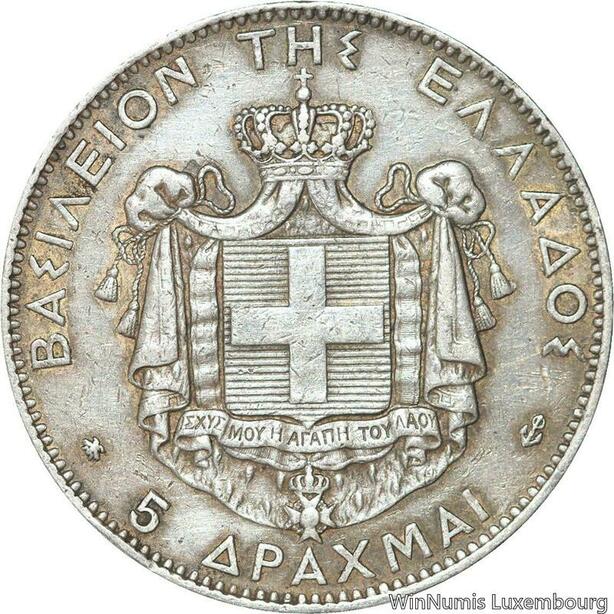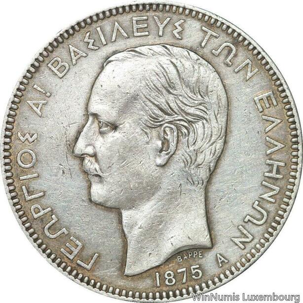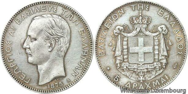 R6170 Rare Greece 5 Drachmai George I 1875 A Paris Silver -> Make offer
