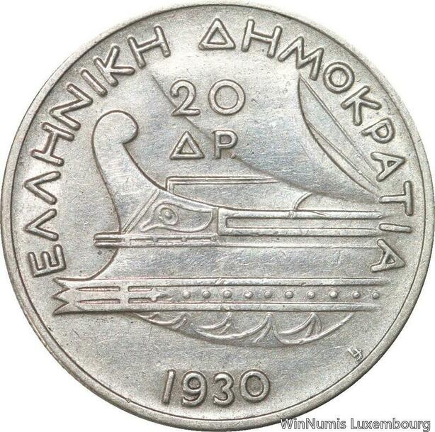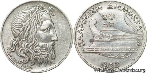 R6172 Greece 20 Drachmai Poséidon 1930 Silver AU -> Make offer