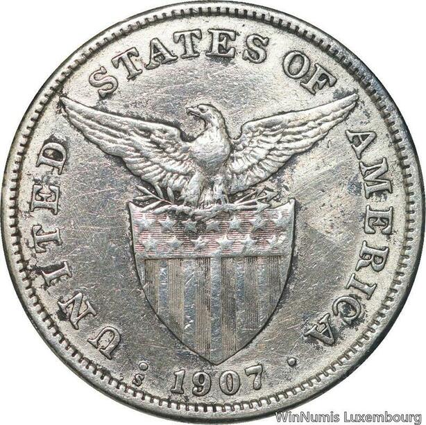 R6178 Philippines One Peso 1907 S San Francisco Silver -> Make offer