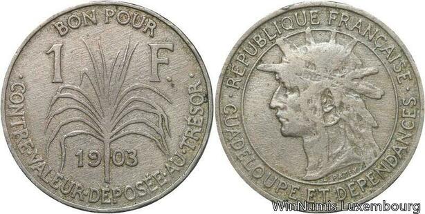 R6244 Guadeloupe French Colonie Bon 1 Franc 1903 -> Make offer