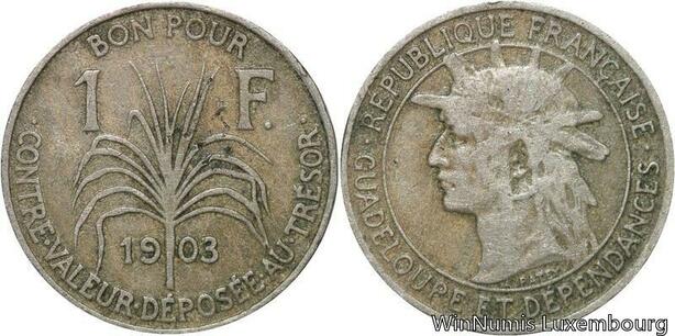 R6245 Guadeloupe French Colonie Bon 1 Franc 1903 -> Make offer