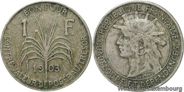 R6247 Guadeloupe French Colonie Bon 1 Franc 1903 -> Make offer
