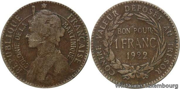 R6254 Martinique French Colonie Bon pour 1 Franc 1922 -> Make offer