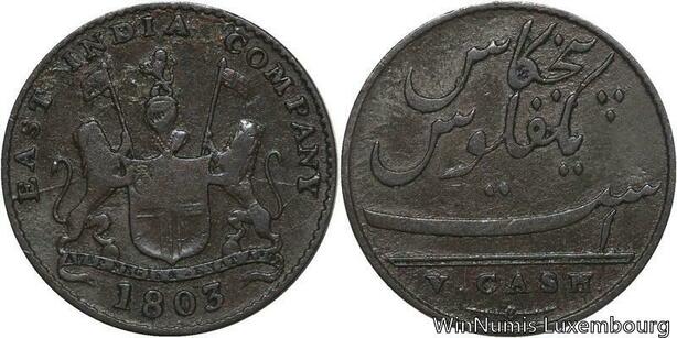 R6267 British India Madras Presidency 5 Cash 1803 -> Make offer