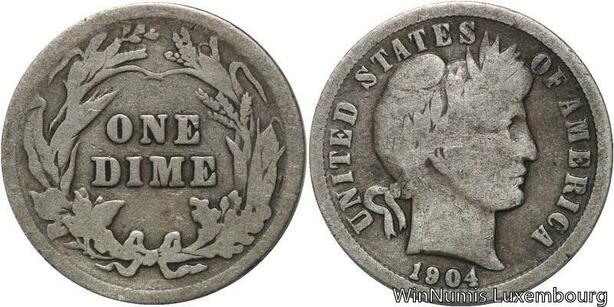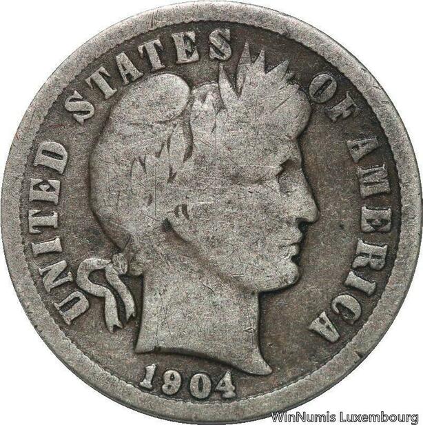 R6282 United States One Dime Barber 1904 Silver -> Make offer