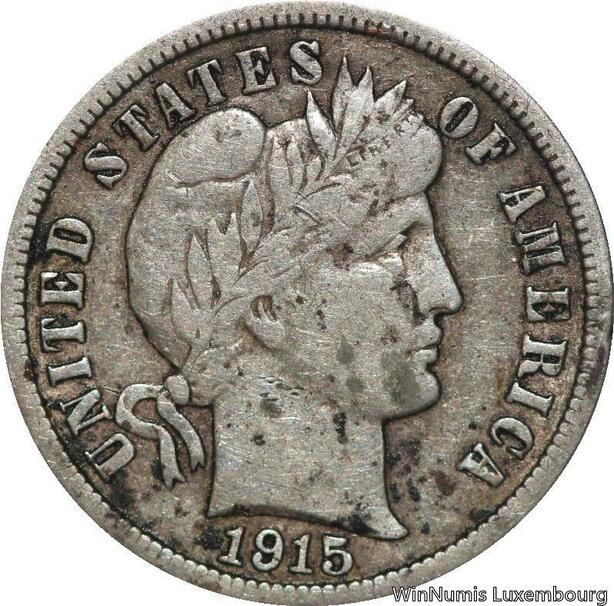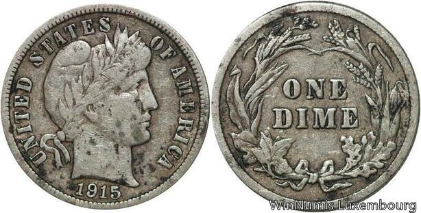 R6284 United States One Dime Barber 1915 Silver -> Make offer