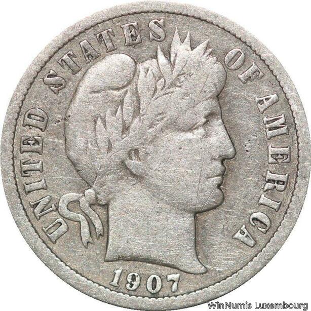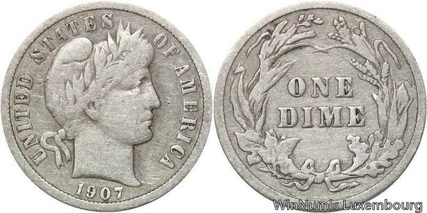 R6287 United States One Dime Barber 1907 Silver -> Make offer