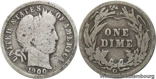 R6290 Rare United States One Dime Barber 1900 O New Orléans Silver -> Make offer
