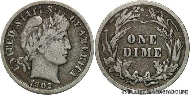 R6293 United States One Dime Barber 1902 Silver -> Make offer