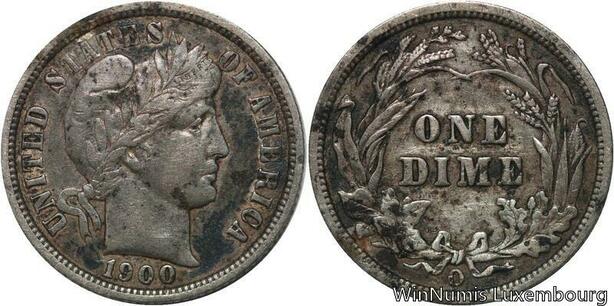 R6294 Rare United States One Dime Barber 1900 O New Orléans Silver -> Make offer