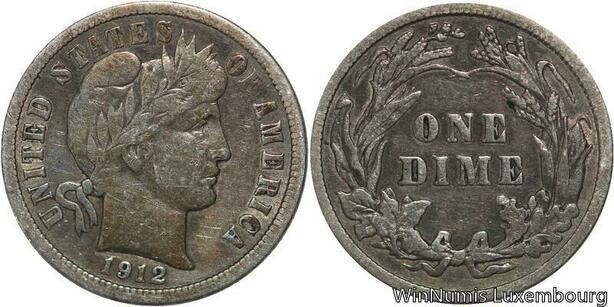 R6295 United States One Dime Barber 1912 Silver -> Make offer