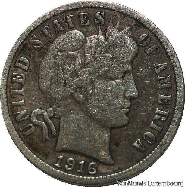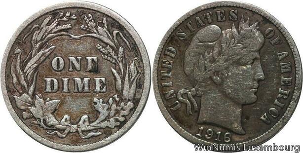 R6297 United States One Dime Barber 1916 Silver -> Make offer