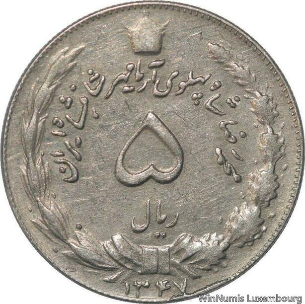 R6318 Iran 5 Rials Muhammad Reza Pahlavi AH 1347 1968 -> Make offer