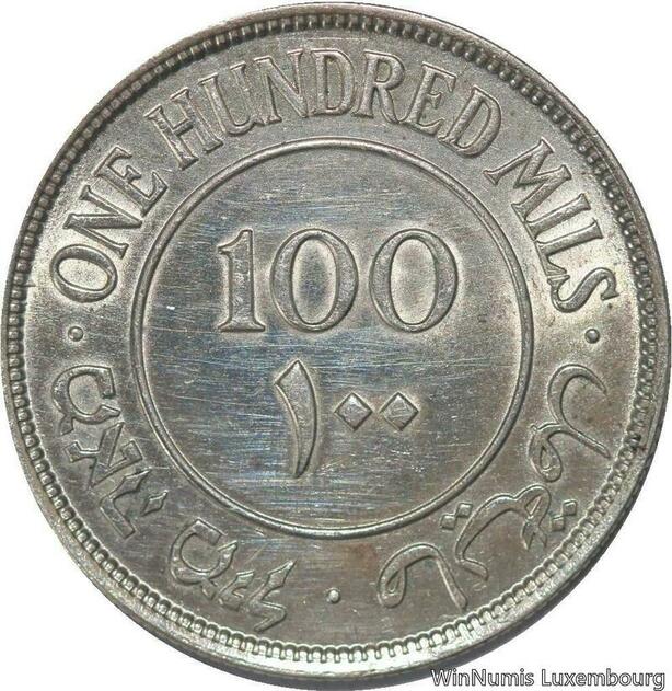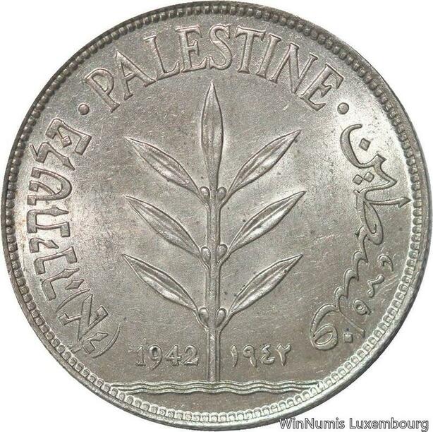 R6328 Rare Palestine British Mandate 100 Mils 1942 London Silver UNC --> M offer