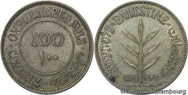 R6329 Palestine British Mandate 100 Mils 1939 London Silver -> Make offer