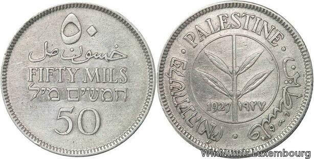R6330 Palestine British Mandate 50 Mils 1927 London Silver -> Make offer
