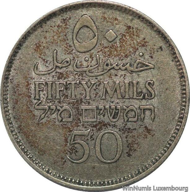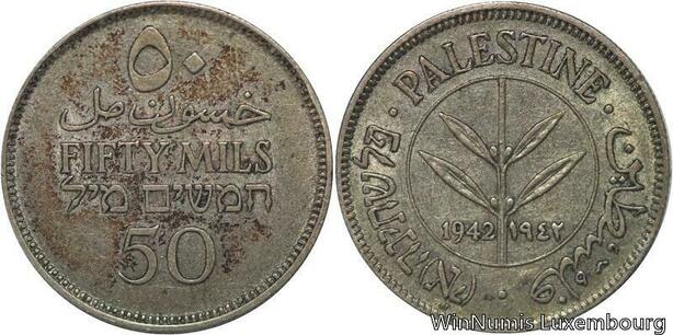 R6333 Palestine British Mandate 50 Mils 1942 London Silver -> Make offer
