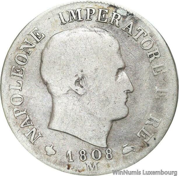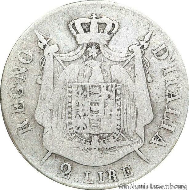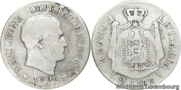 R6352 Rare Italy 2 Lire Napoleon Bonaparte 1808 M Milan Edge raised Silver