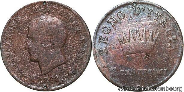 R6368 Italy Kingdom 3 Centesimi Napoléon Bonaparte 1808 V Venise -> Make offer