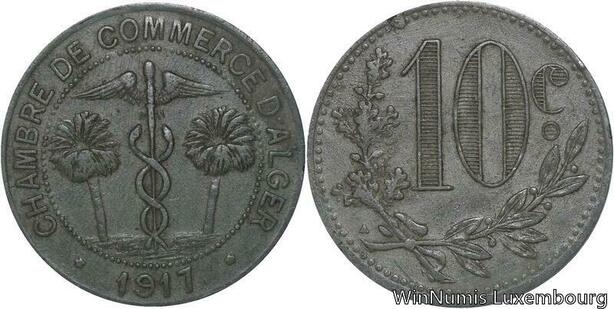 R6383 Token Algeria French Colonies 10 Centimes Chambre Commerce 1917 Alger AU