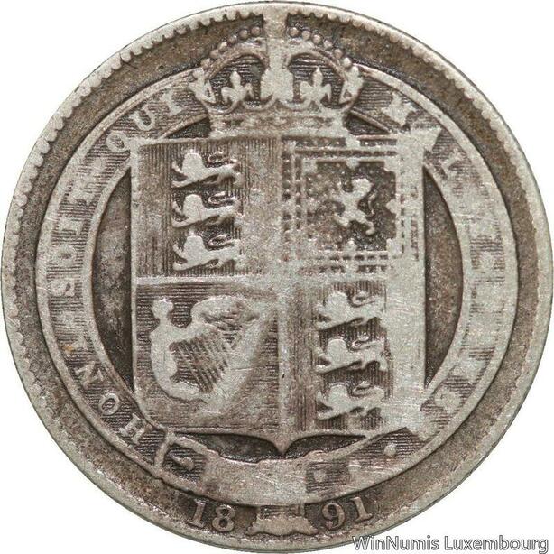 R6398 United Kingdom One Shilling Victoria 1891 Silver -> Make offer