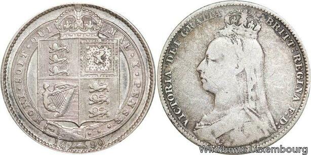 R6399 United Kingdom One Shilling Victoria 1890 Silver -> Make offer