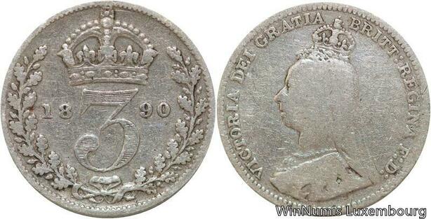 R6402 United Kingdom 3 Pence Victoria 1890 Silver -> Make offer