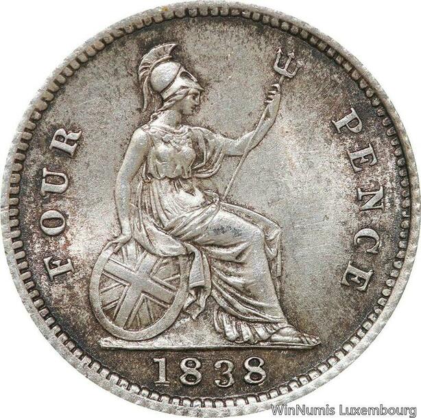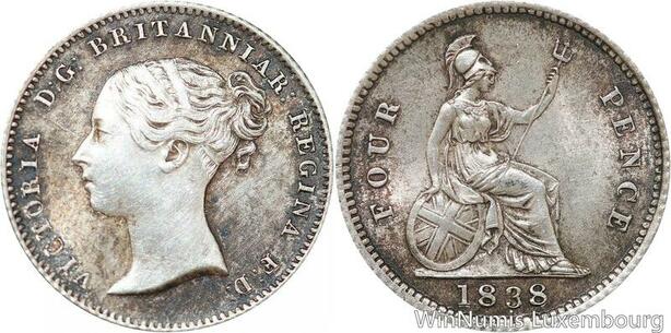 R6416 Rare United Kingdom 4 Pence Victoria 1838 Silver UNC -> Make offer
