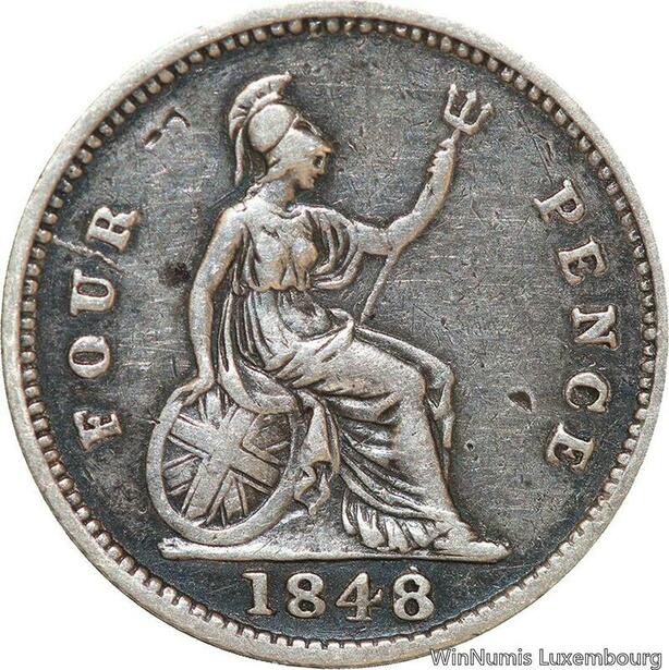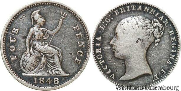 R6417 Rare United Kingdom 4 Pence Victoria 1848 /6 Silver -> Make offer