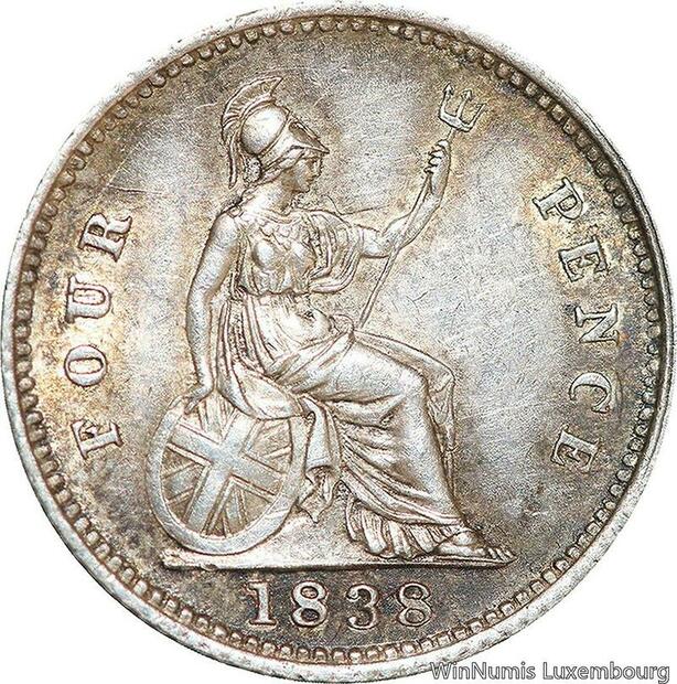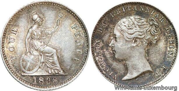 R6419 Rare United Kingdom 4 Pence Victoria 1838 Silver AU -> Make offer