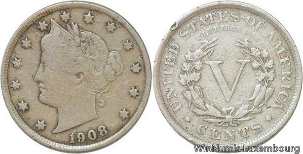 R6456 United States 5 Cents Liberty 1908 -> Make offer