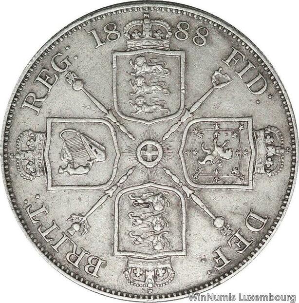 R6471 Rare United Kingdom Double Florin Victoria 1888 Silver -> Make offer