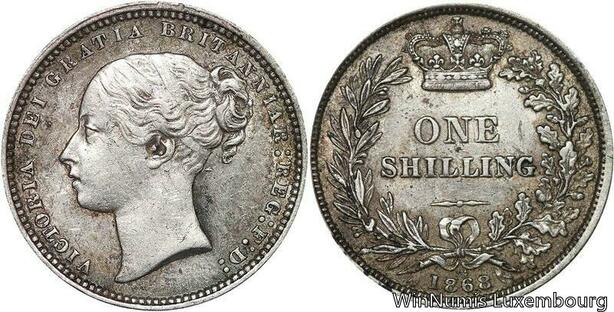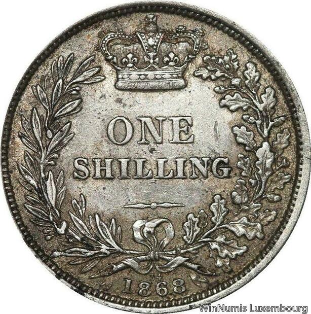 R6480 Rare United Kingdom Shilling Victoria 1868 die 34 Silver -> Make offer