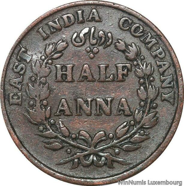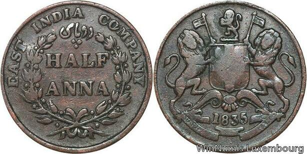 R6488 East India Company 1/2 Anna Victoria 1835 Bombay -> Make offer