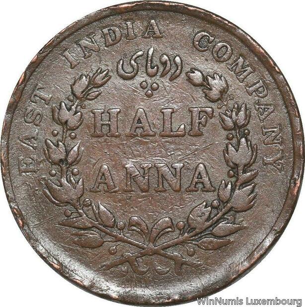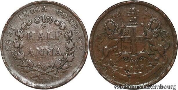 R6491 Rare East India Company 1/2 Anna Victoria 1845 C Madras -> Make offer