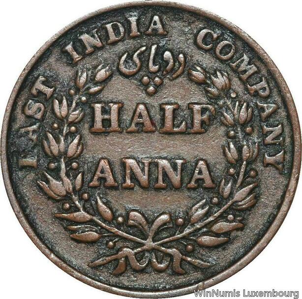 R6492 East India Company 1/2 Anna Victoria 1835 Bombay -> Make offer