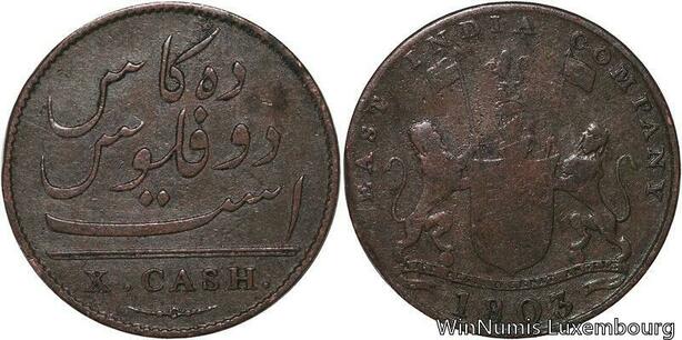 R6516 East India Company Madras Presidency 10 Cash 1803 -> Make offer