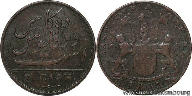 R6519 East India Company Madras Presidency 10 Cash 1803 -> Make offer