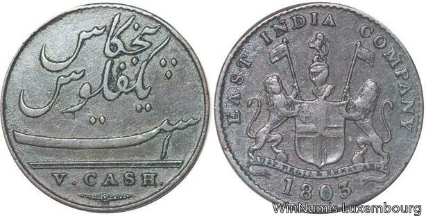 R6526 East India Company Madras Presidency 5 Cash 1803 -> Make offer