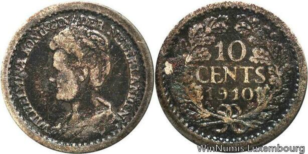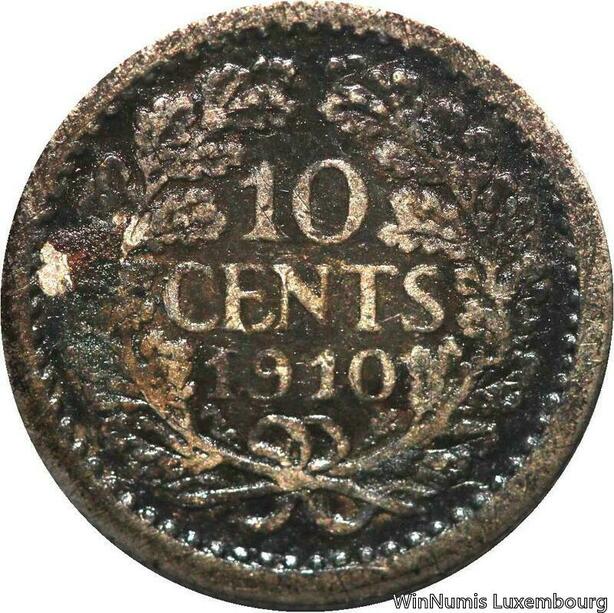 R6544 Netherlands 10 Cents Wilhelmina I 1910 High crown Silver -> Make offer