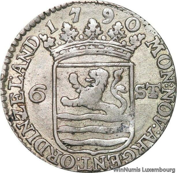 R6554 Netherlands 6 Stuivers Sailing ship 1790 Silver -> Make offer