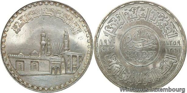 R6586 Egypt Pound Livre Mosque Al-Azhar AH 1359 1970 Silver UNC -> Make offer