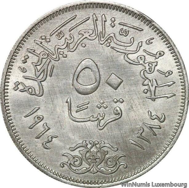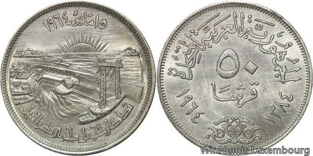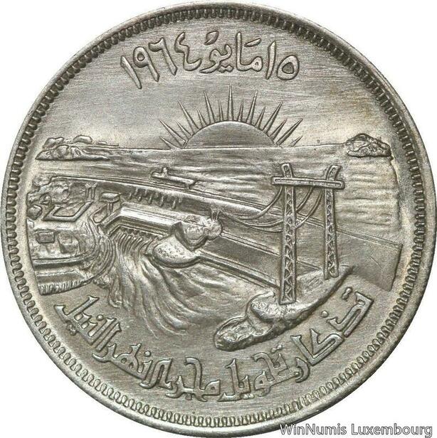 R6589 Egypt 5 Qirsh 5 Piastres Diversion of the Nile 1964 Silver AU ->Make offer