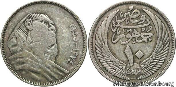 R6593 Egypt 10 Qirsh 10 Piastres Sphinx AH 1374 1955 Silver -> Make offer