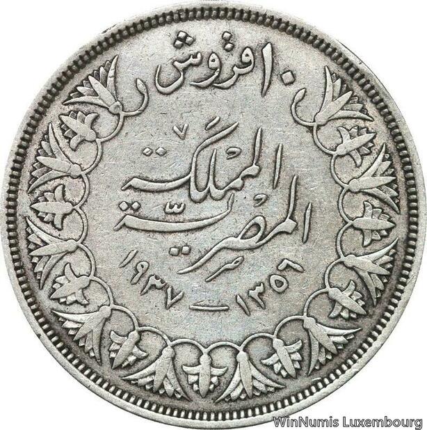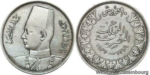 R6602 Egypt 10 Qirsh 10 Piastres Farouk AH 1356 1937 Silver -> Make offer
