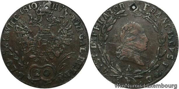 R6616 Austria Old Counterfeit 20 Kreuzer Franz I 1810 Silver -> Make offer